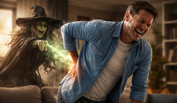 Im Mittelalter hätten wir jetzt auf dem Rücksitz die Hexe vermutet. Heute aber wissen wir, dass unser Rückenschicksal nicht von der Laune einer Hexe abhängt, sondern von unserer eigenen Lebens- und Ernährungsweise sowie von unseren Bewegungsgewohnheiten.